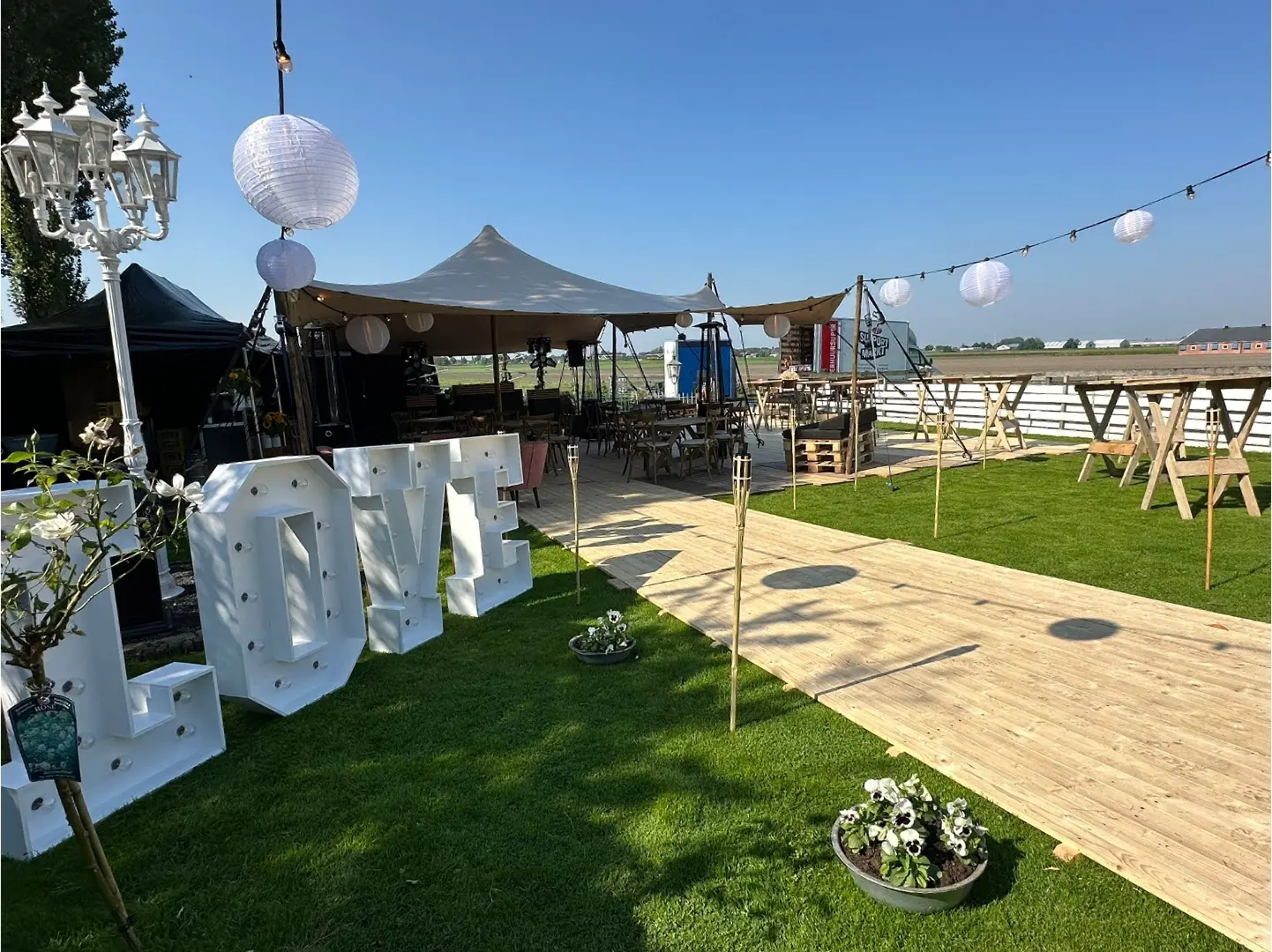 Een trouwdag vraagt om een setting die klopt. Of je nu kiest voor de bohemian festivalstijl met lage loungebanken, tapijten en droogbloemen, of juist voor een elegante ‘summer chique’ vibe met linnen tafelkleden, wijnglazen en lichtletters: Supportmarkt support je graag.