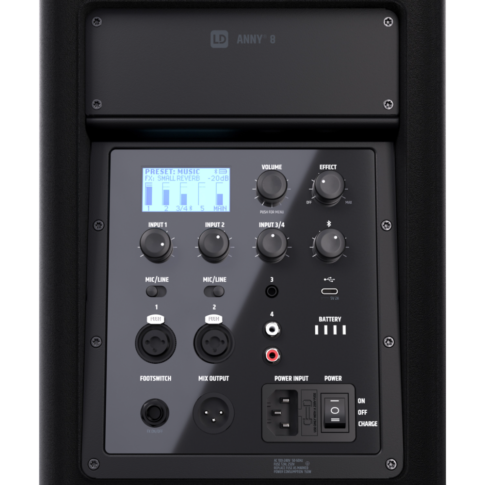 De ANNY® 8 is ideaal voor spraak en muziek. Via de footswitch-ingang kun je reverb en delay handsfree bedienen. Dankzij de “Priority”-functie wordt muziek automatisch zachter zodra je de microfoon gebruikt – handig voor aankondigingen.