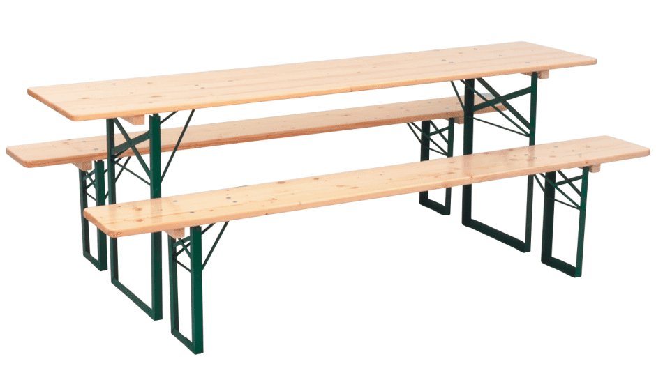 Onze bierbankset is de perfecte keuze voor feesten, festivals en evenementen! De set bestaat uit een stevige tafel en twee robuuste banken, ideaal voor grote gezelschappen.