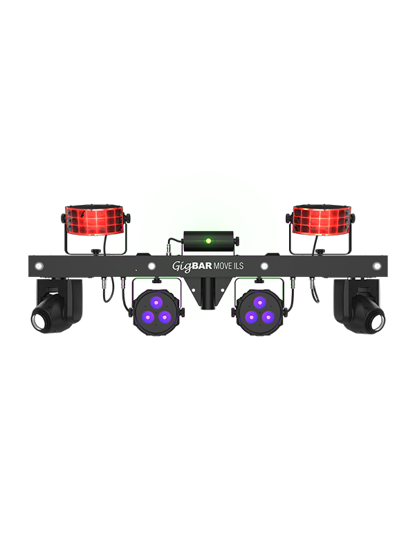 Chauvet DJ GigBAR Move ILS is een 5-in-1 pack-and-play-systeem dat moving heads, derby”s, washes, een laser- en stroboscopisch effect omvat, voorgemonteerd op één balk! Aangestuurd door het Integrated Lighting System (ILS).