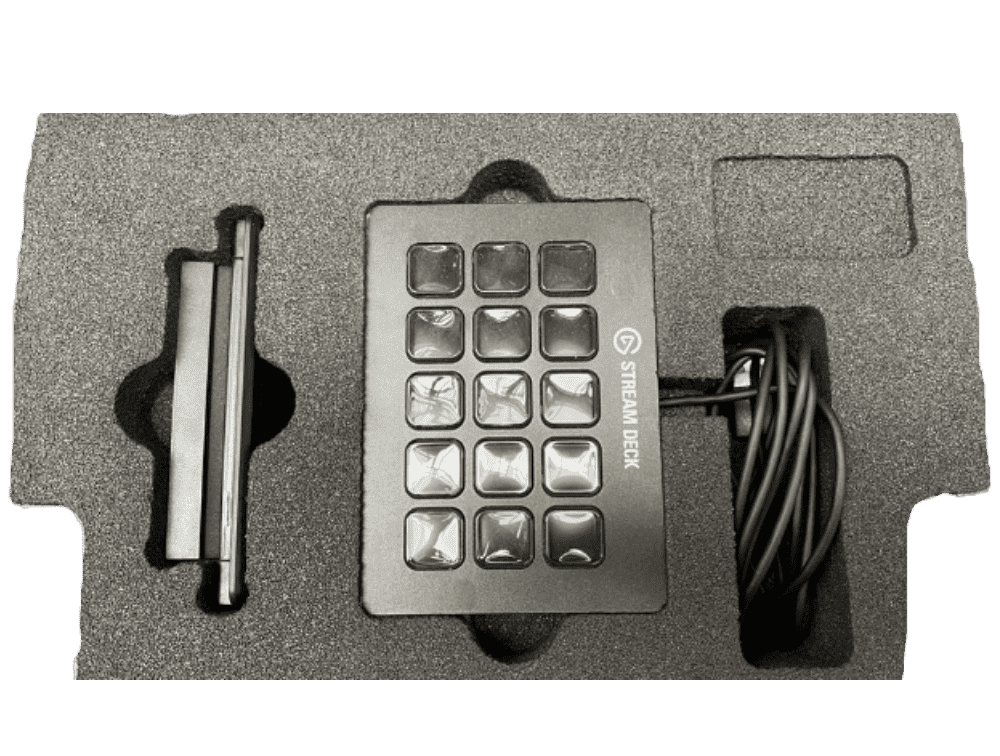 Het Elgato Stream Deck weegt 190 gram met de afmetingen 118x84x21mm en wordt in een handige foam inlay geleverd met standaard en een geïntegreerde USB-2.0-kabel (150 cm / 59,1 in)