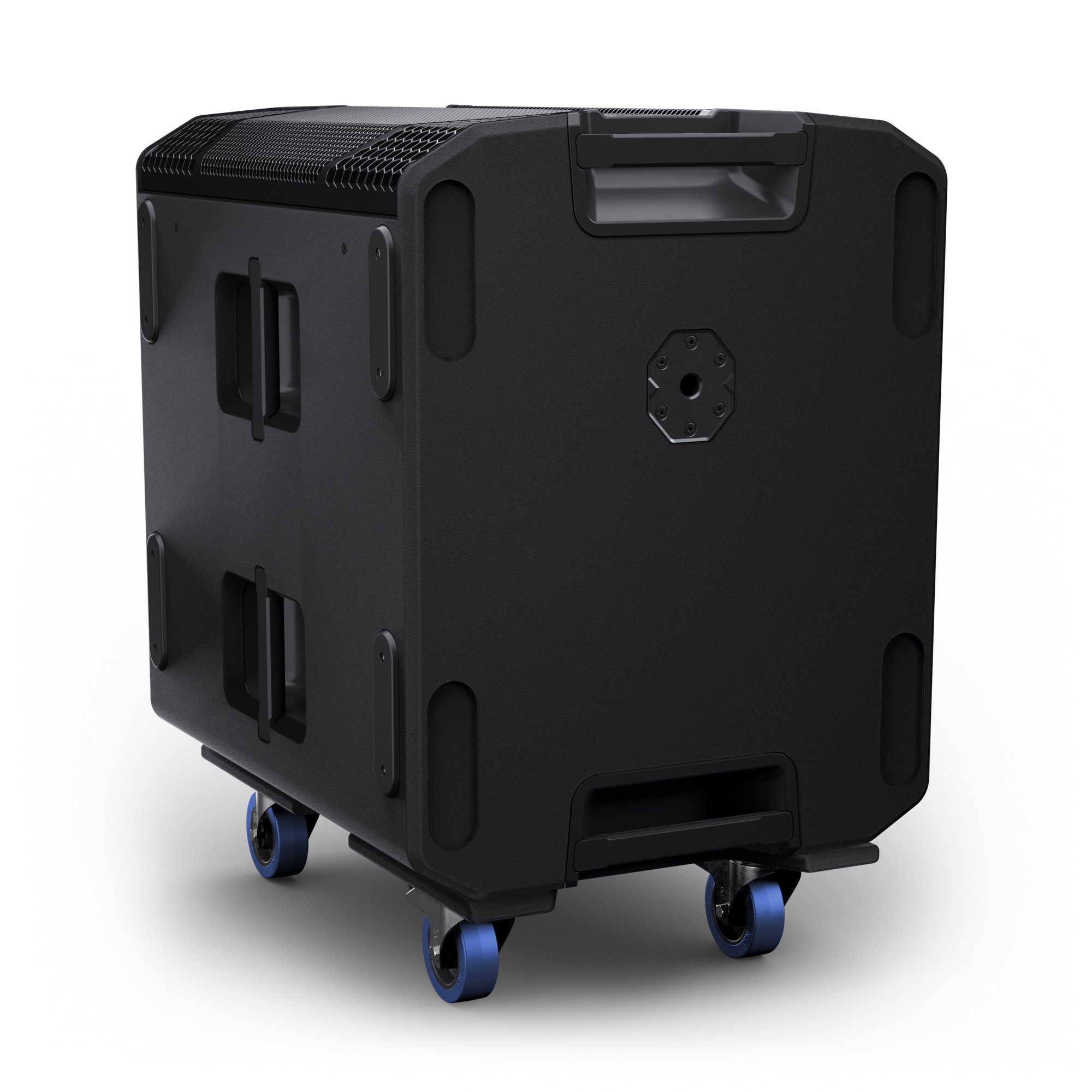 De 21” subwoofer levert een indrukwekkend en diep laag tot in de laagste frequenties, met een strakke en gecontroleerde respons. Dankzij de krachtige interne versterking en slimme DSP blijft het geluid strak en vervormingsvrij, ook bij maximale belasting. De sub is geplaatst op een dolly, waardoor transport en positionering eenvoudig en efficiënt verlopen.