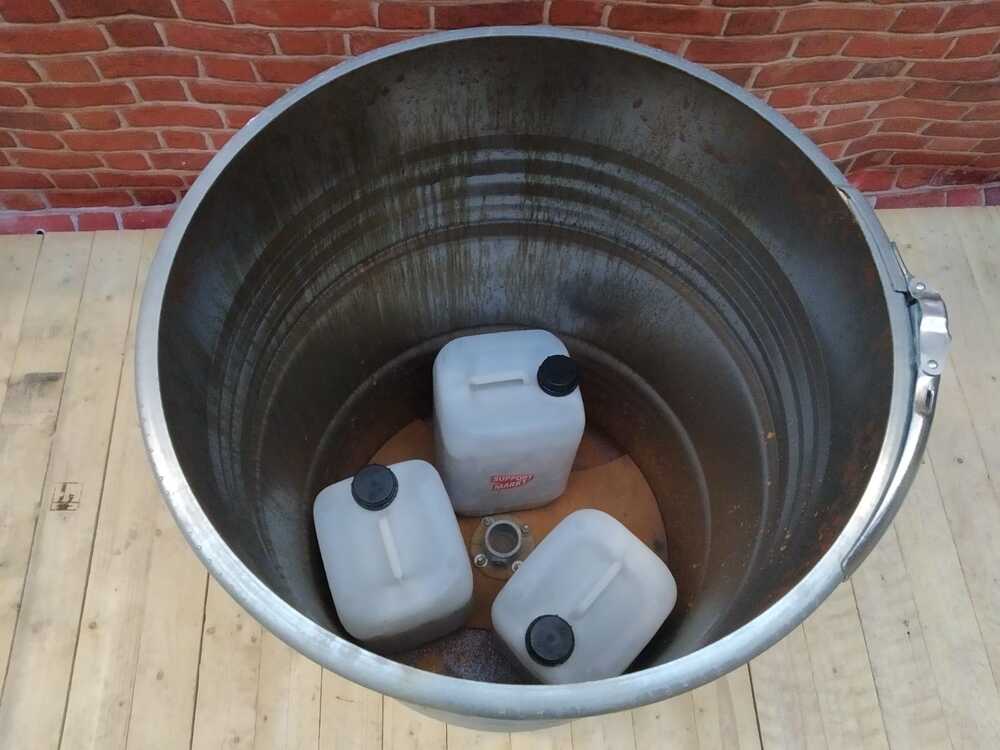 Per Olietonconstructie zijn minimaal 3 jerrycans nodig, deze worden in de olieton geplaatst en daarna het deksel of statafelblad op de olieton.