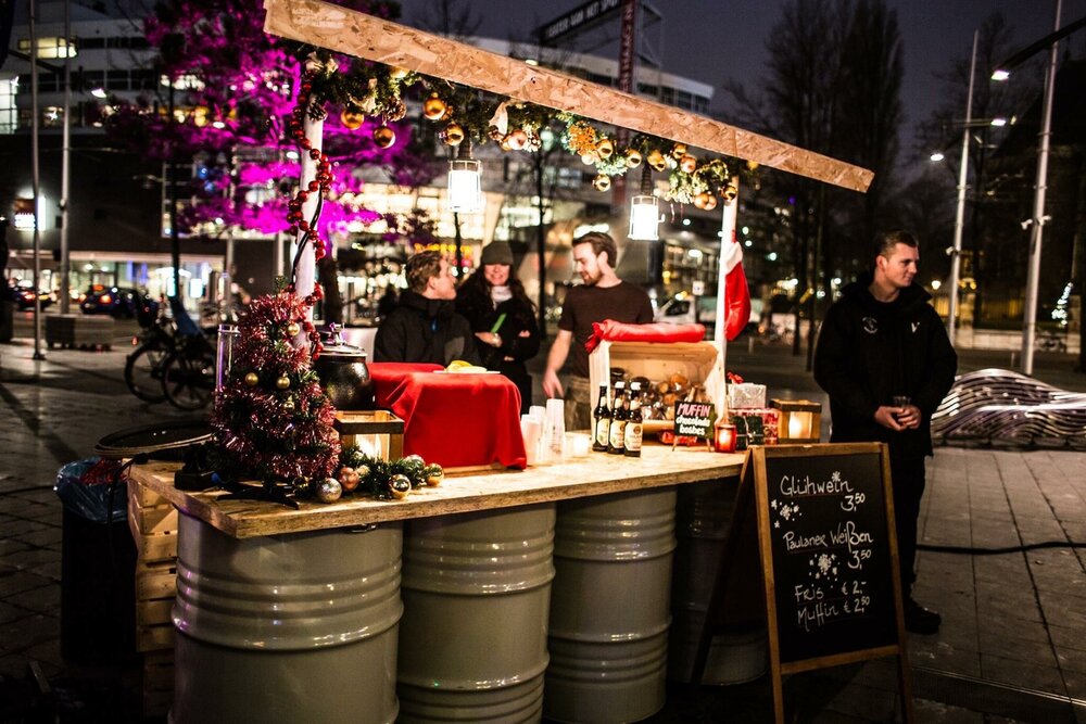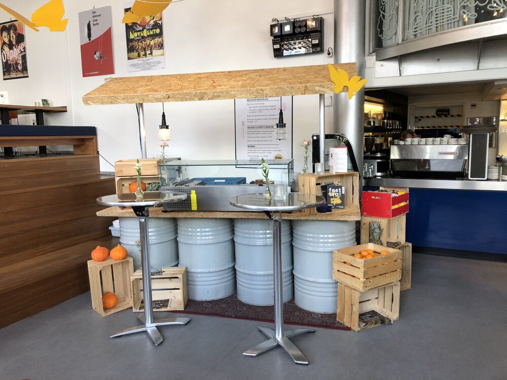 Geef uitstraling aan je entree, gebruik als speciaal uitgiftepunt of markt, met onze marktkraam bestaande uit stoere en robuste olietonnen.