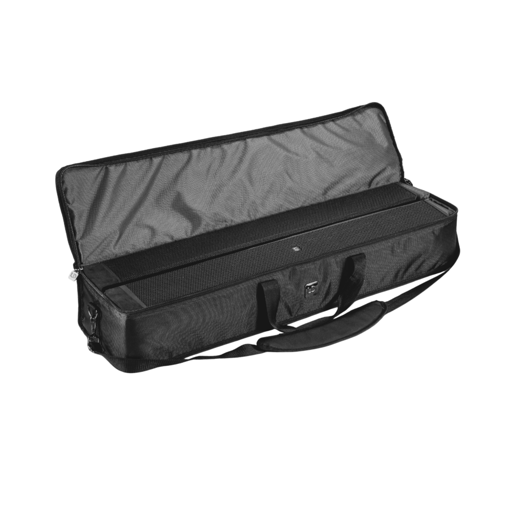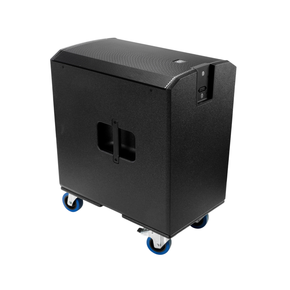 Transport is eenvoudig: geen statieven of kabels nodig. Het robuuste subwoofer-huis van berkenmultiplex is voorzien van een slijtvaste polyurea-coating en weegt samen met de aluminium kolom minder dan 48 kg – 20% lichter dan de vorige versie.