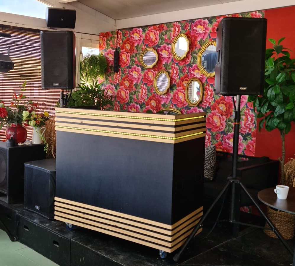De Luxe DJ Booth XL wordt verhuurd met op- en afbouw [niet in prijs inbegrepen]