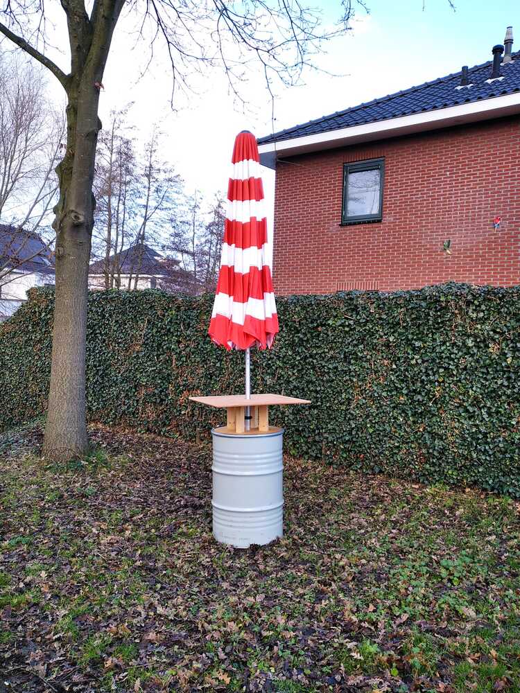 Ook handig voor bij een OlieTonTonSol | Statafel met Parasol Rood | Set van 2