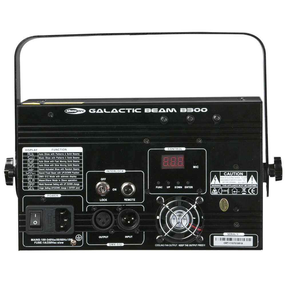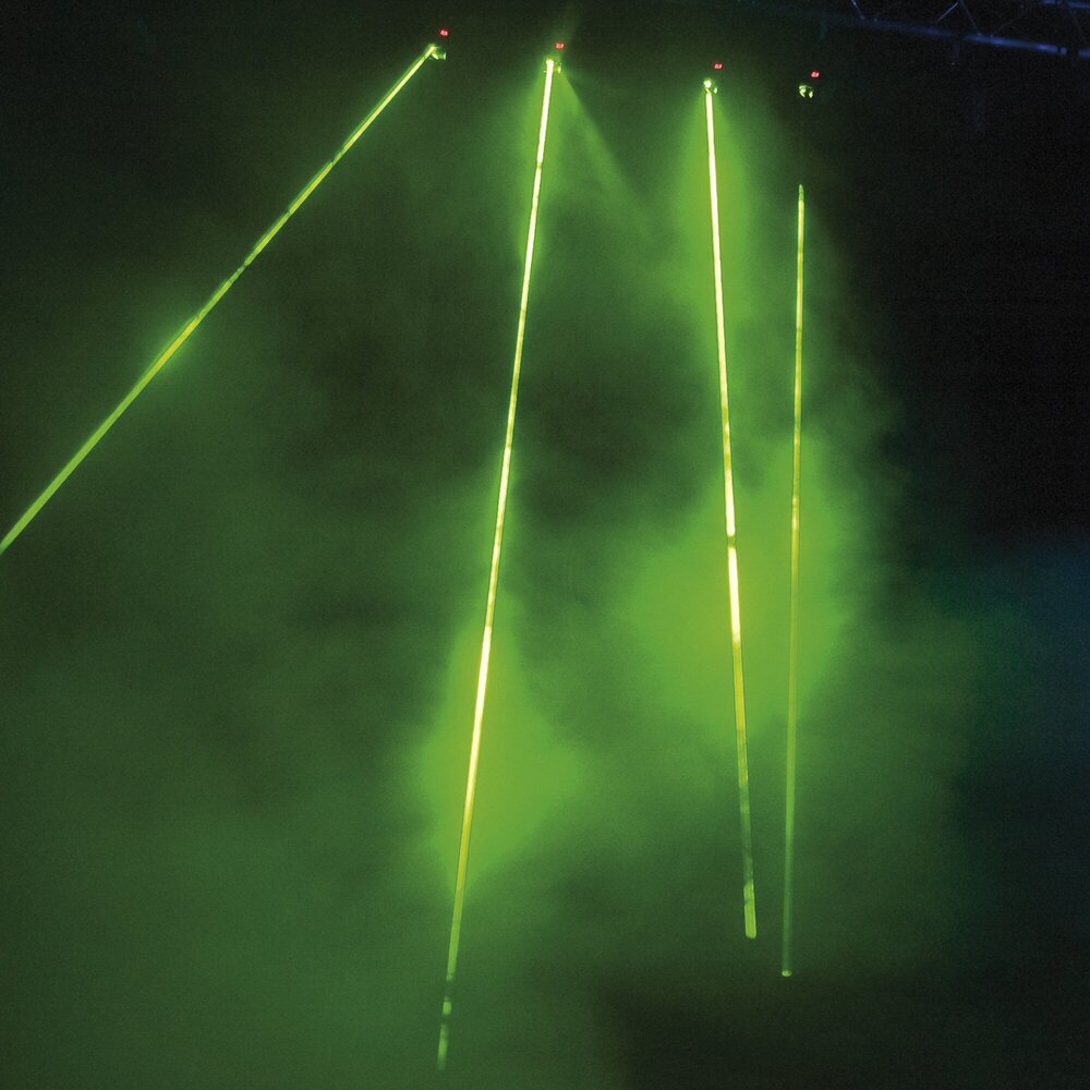 De Galactic Beam is voorzien van een krachtige 40mW groene dikkelaserstraal die een sterke en solide straal projecteert. Besturing gaat automatisch vaia programma of via autosound